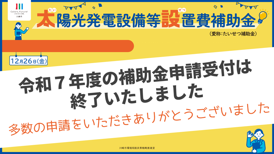 令和7年度「太陽光発電設備等設置費補助金」の申請受付が終了しました