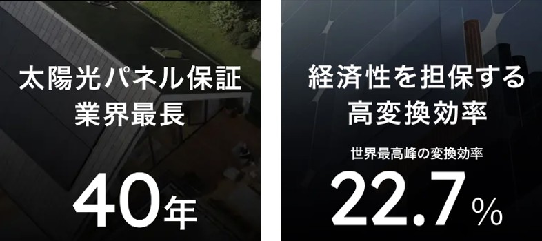 ソーエネでは、提案する太陽光発電システムとして業界最長40年保証のMAXEON(マキシオン)をはじめとしたパネルをご提案させていただいております。
