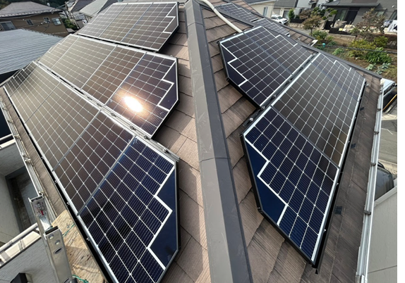 電気代の高騰をきっかけに、太陽光発電と蓄電池を設置したいとのご依頼でした。昼間に発電した電気を自家消費し、余った電気は蓄電して夜に活用。様々なものが高騰している中、毎月の電気代がぐっと減り家計に余裕ができたとのことで、喜んで頂ける提案ができました。