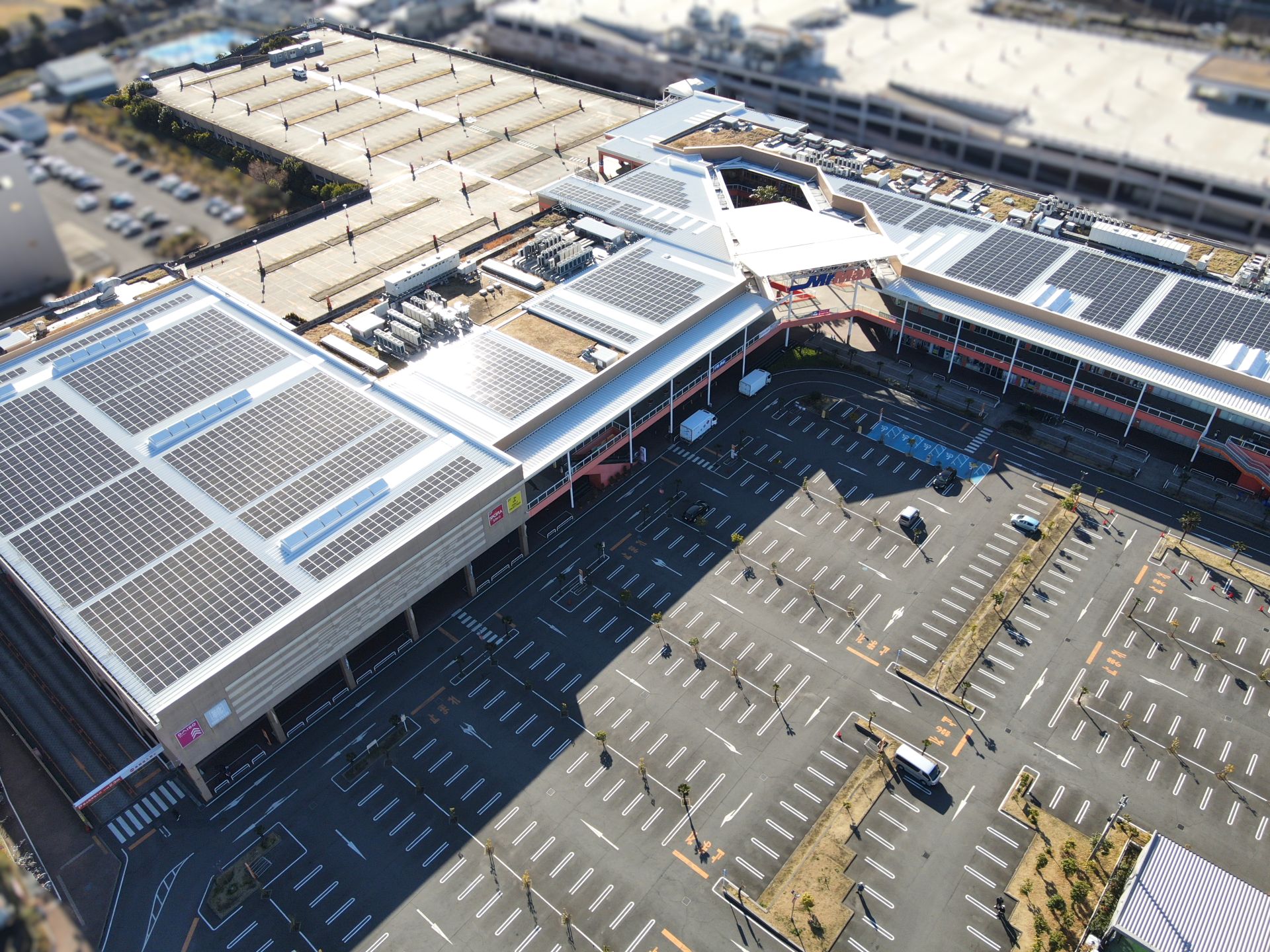 株式会社ミスターマックス・ホールディングス様が構えるショッピングセンターに、自家消費型太陽光発電システム(1,155kW)を設置しました。