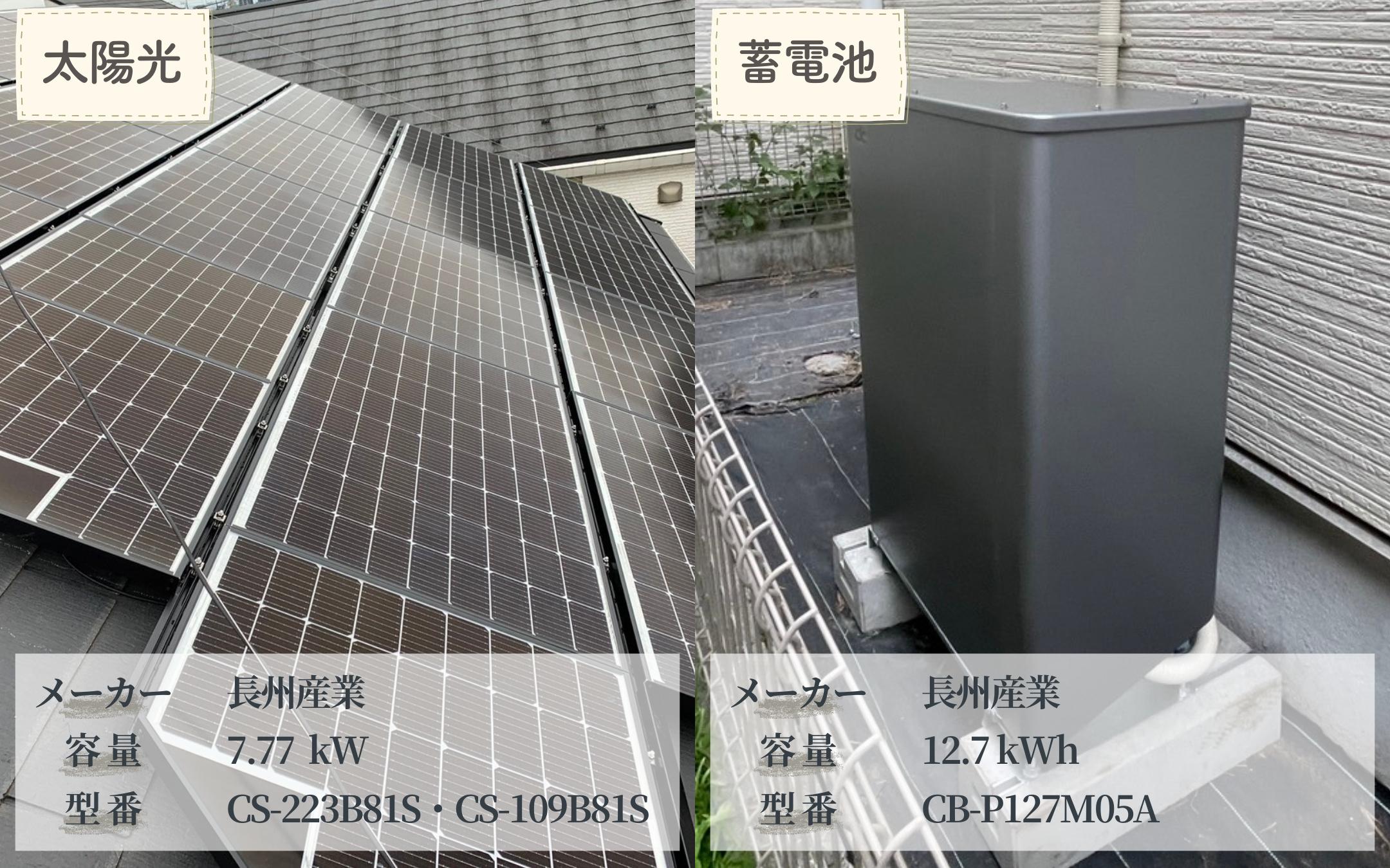 お客様から「電気代が年々高くなり将来が不安」とのご相談をいただきました。そこで長州産業の太陽光7.77kWと蓄電池12.7kWhをご提案。日中に発電した電気を効率よく蓄え、夜間にも使用することで電気代の軽減を実現。さらに停電時にも電力を確保でき、安心して暮らせる住環境が整いました。