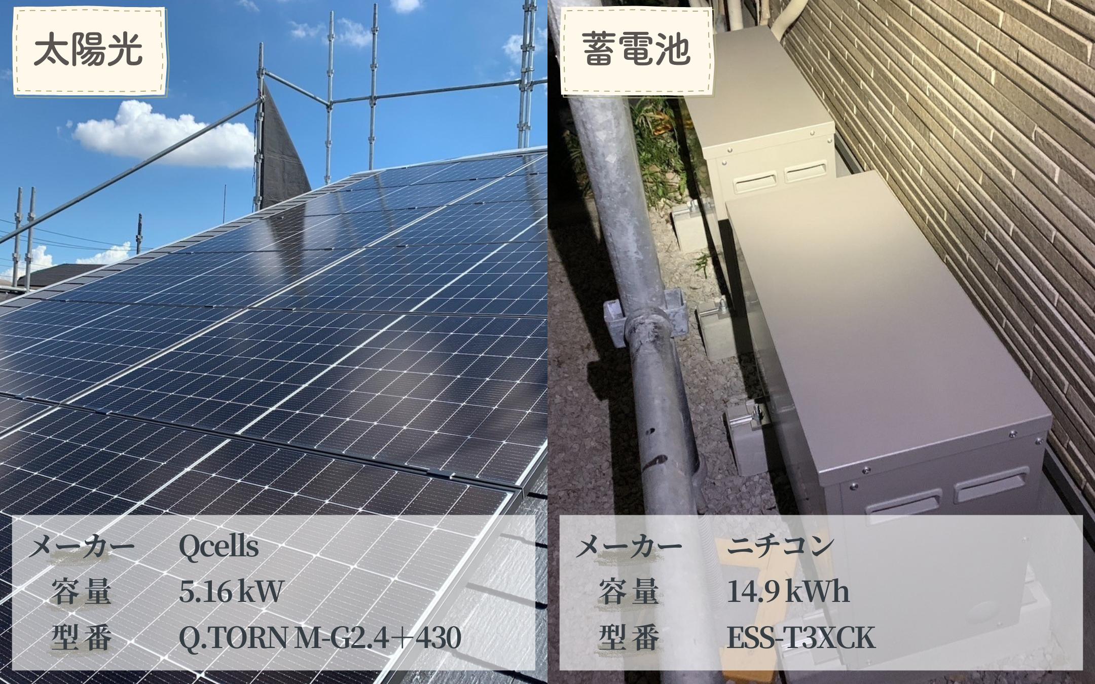 今回のお客様は「補助金を有効活用できること」「地域でつくった電気を自宅で使いたい」という想いをお持ちでした。そこでQcells製5.16kWの太陽光とニチコン製14.9kWhの蓄電池を導入。再生可能エネルギーを無駄なく使い、地産地消の暮らしを実現しました。補助金を上手に使うことで費用も抑えられました。