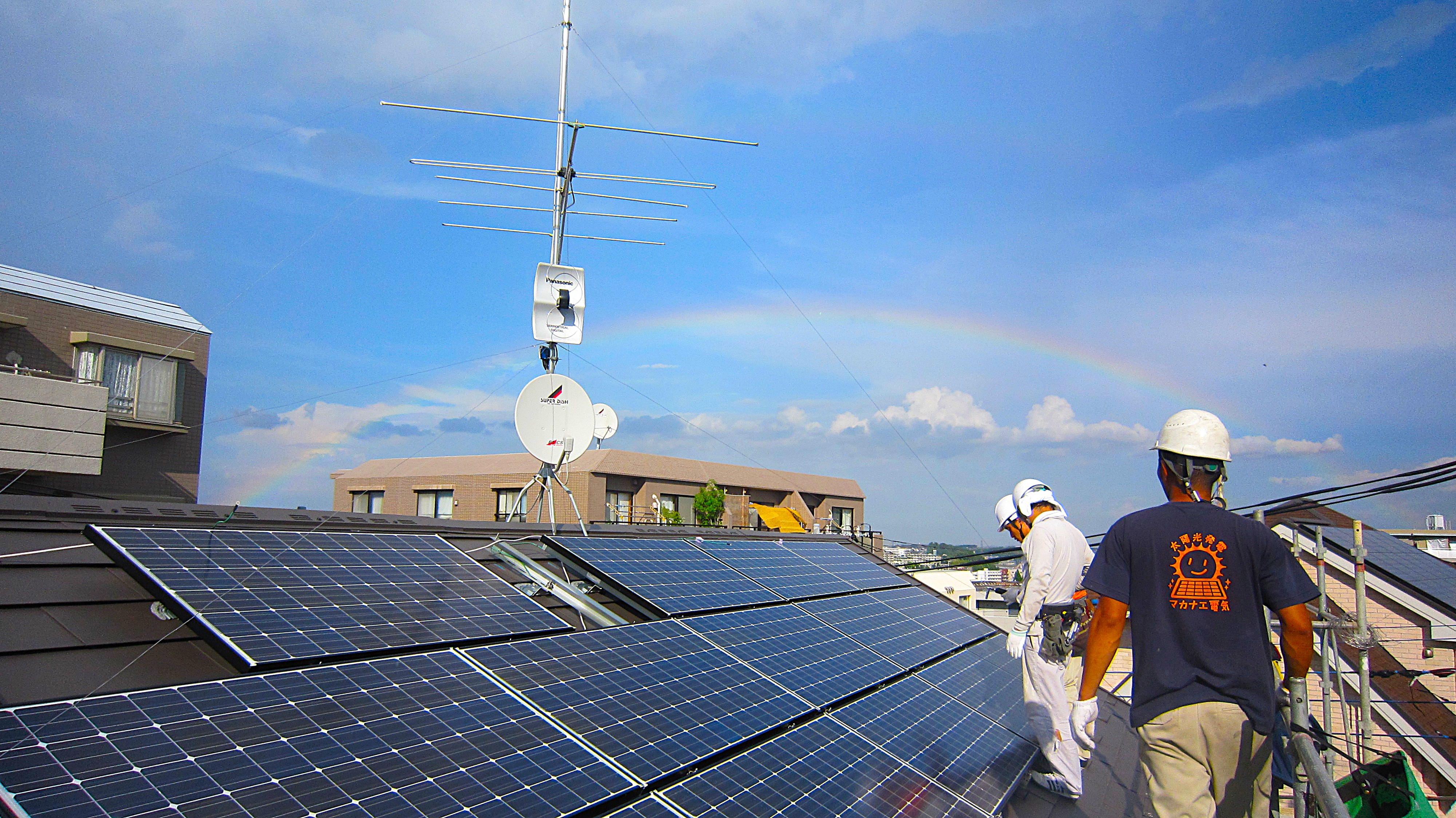 高津区企業様屋上に、頑丈な架台にて産業用システムを設置。