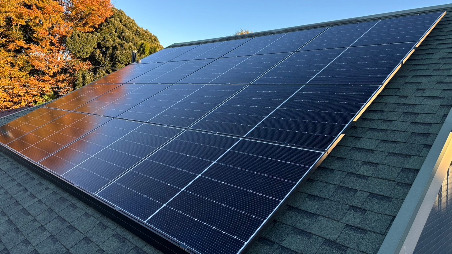 シルファイン製の太陽光パネルを設置した施工事例です。シルファインのパネルは、コストパフォーマンスと安定した発電性能を兼ね備え、住宅用として高い評価を得ています。軽量設計のため屋根形状への対応力が高く、急勾配の屋根でも安全に設置可能です。屋根や壁面など限られたスペースを有効活用でき、電気代削減と長期的な安心を両立する、初めての太陽光導入にも適したパネルです。
