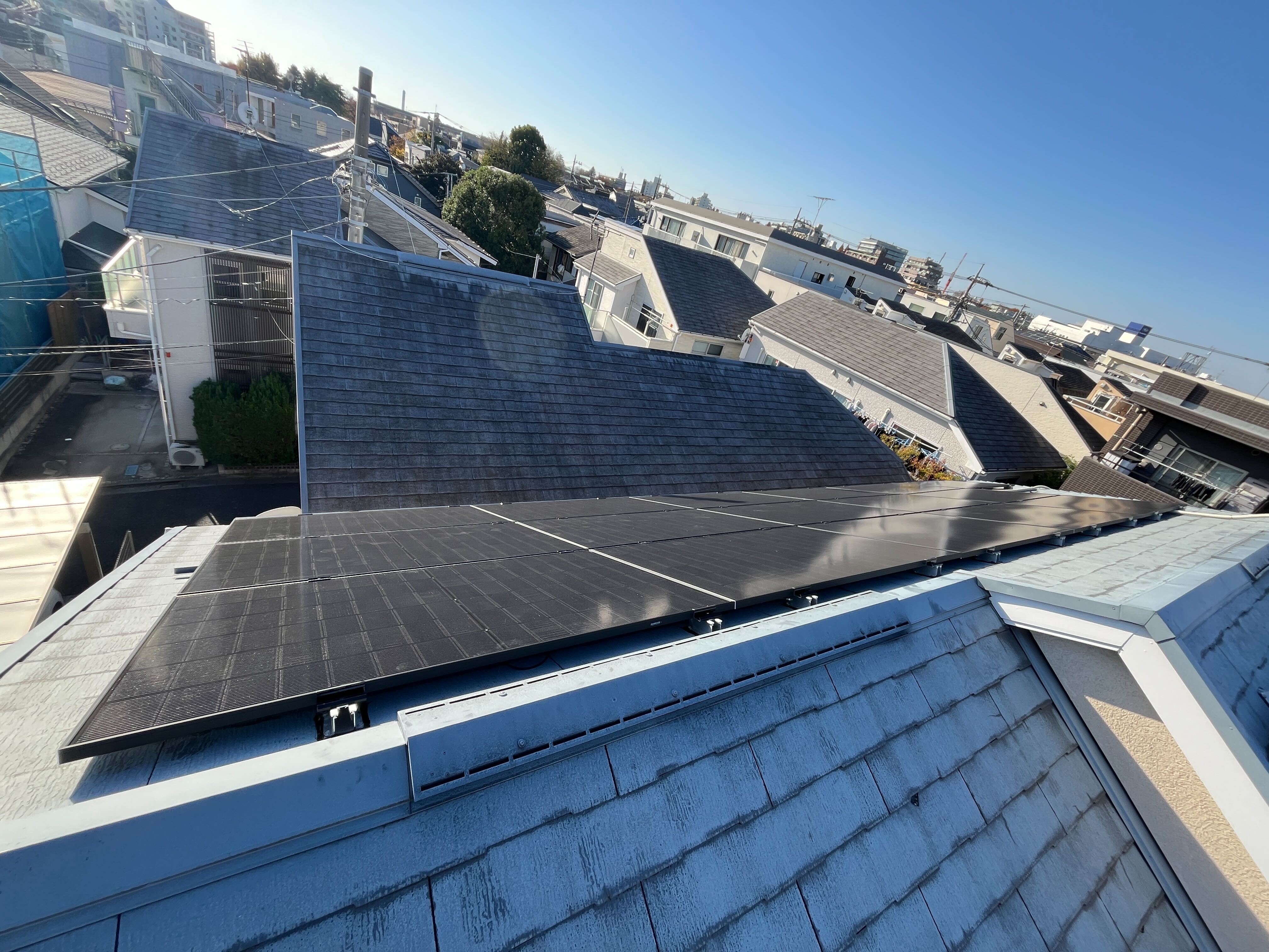 陸屋根住宅にて、屋根状況を確認し、防水性能の維持を優先して防水工事をご提案しました。防水工事完了後、改めて屋根の状態を確認したうえで太陽光パネルを設置しています。