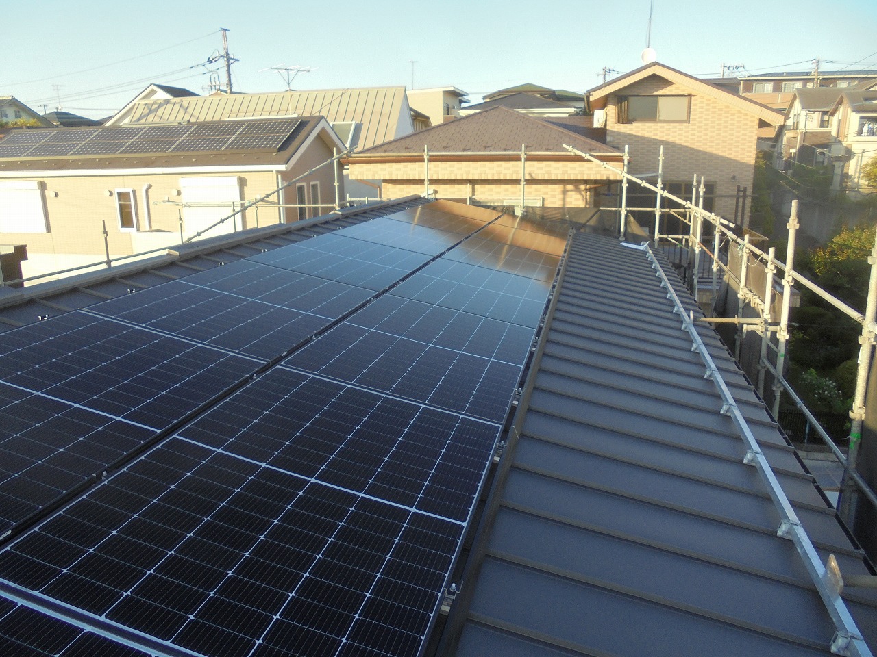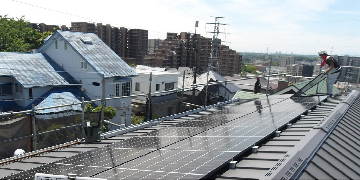 川崎市麻生区内の新築工事でカナディアンソーラーを施工しました。 真南の建物で発電能力を生かせました。 川崎市内で施工を増やしていきます。