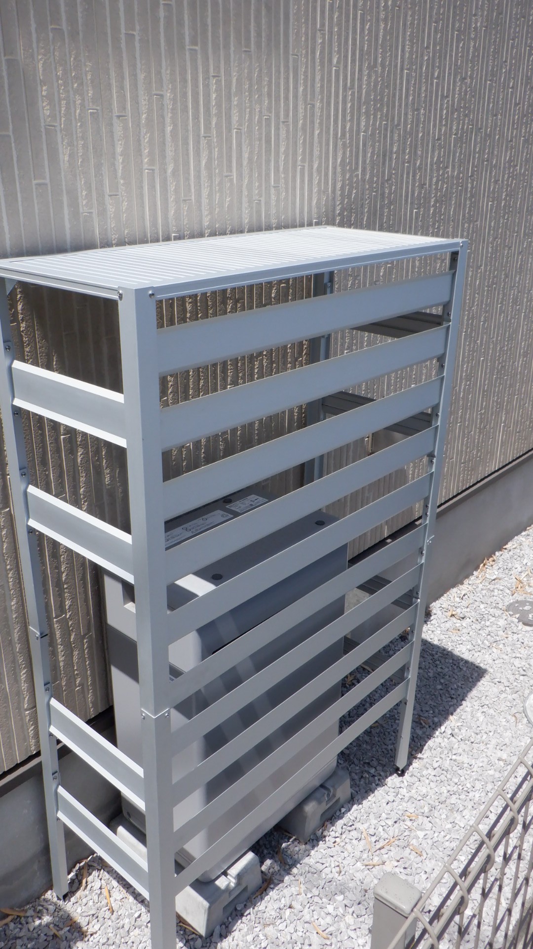 とにかく陽当たりが良すぎるとの事で、北東面への蓄電池設置でしたが日光除けのカバーをオプションで設置させていただき、ご安心いただきました。