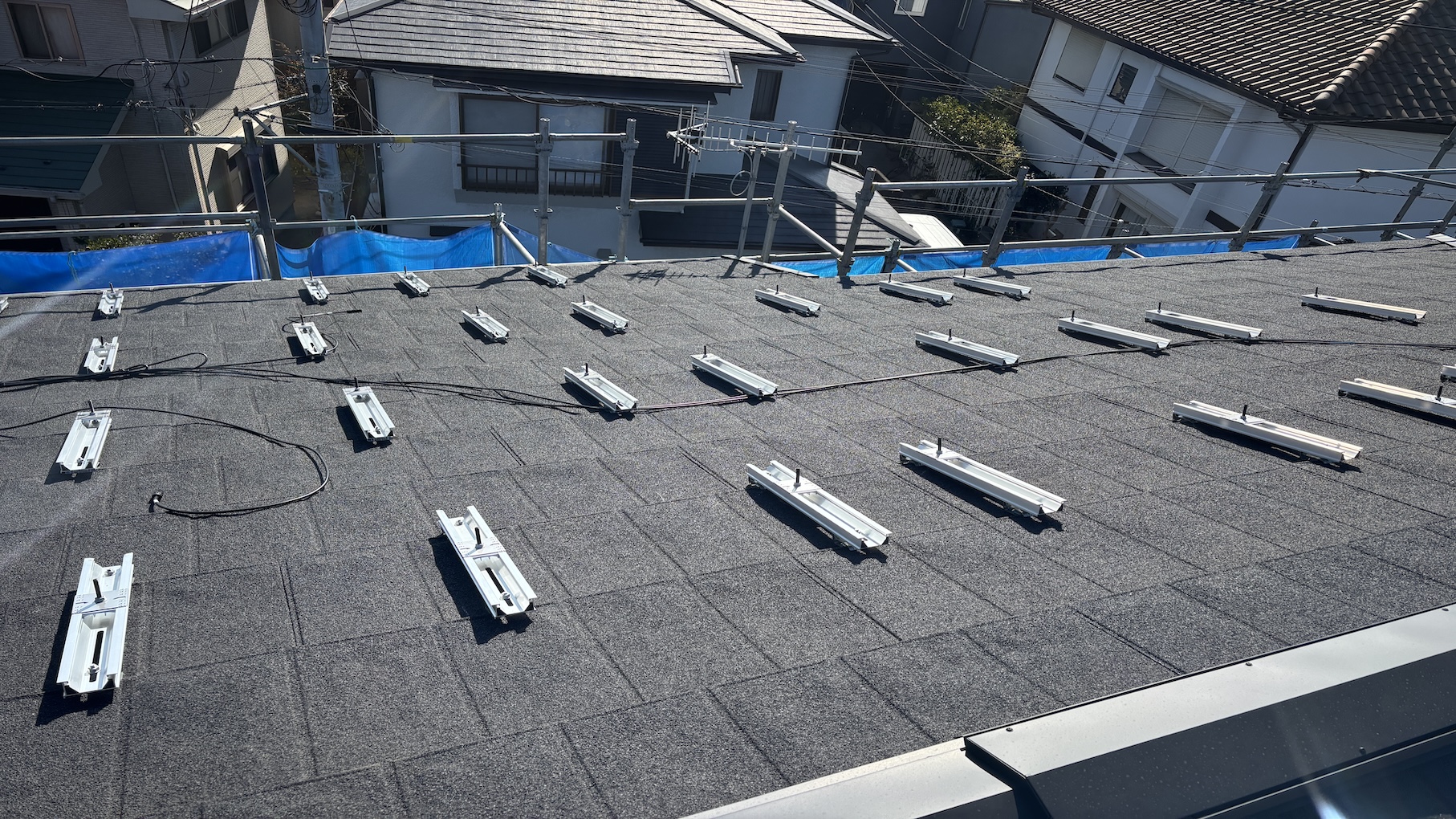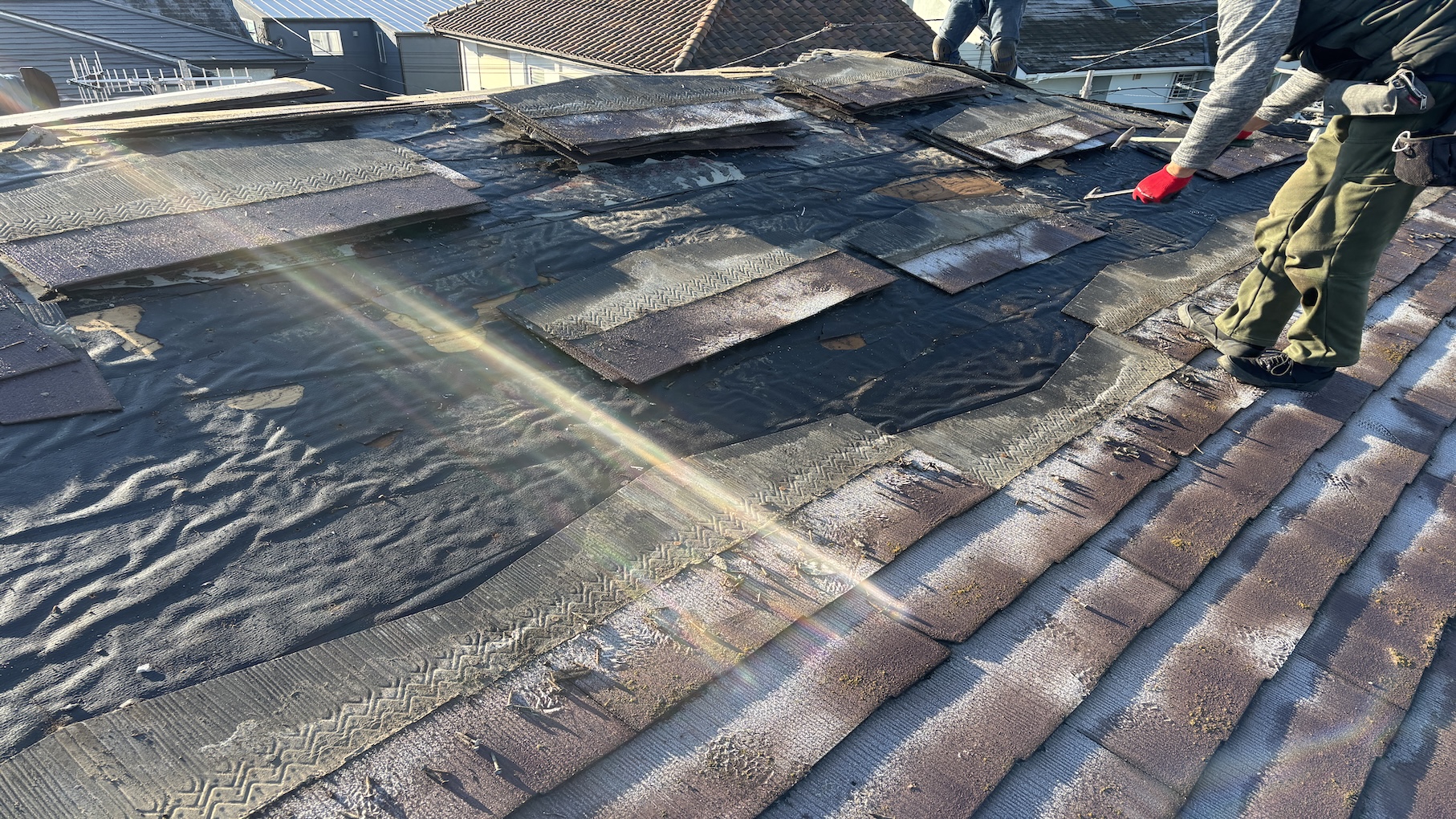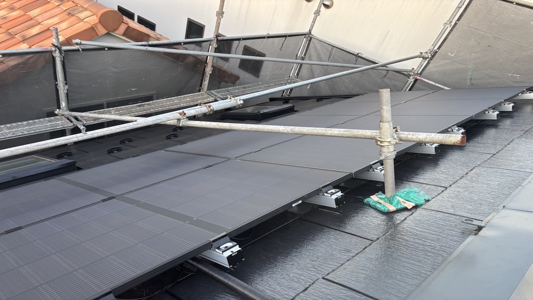 築45年のお客様。他社様では問題なく設置できるとのことでしたが不安が消えず当社へ相談されました。当社では将来のことも考えて太陽光設置前に屋根の葺き替えをご提案しました。金属葺きの屋根に葺き替えることで屋根の耐久性UPと太陽光パネル設置時に穴を開けないので物理的に雨漏りしなくなる工事を行いました。