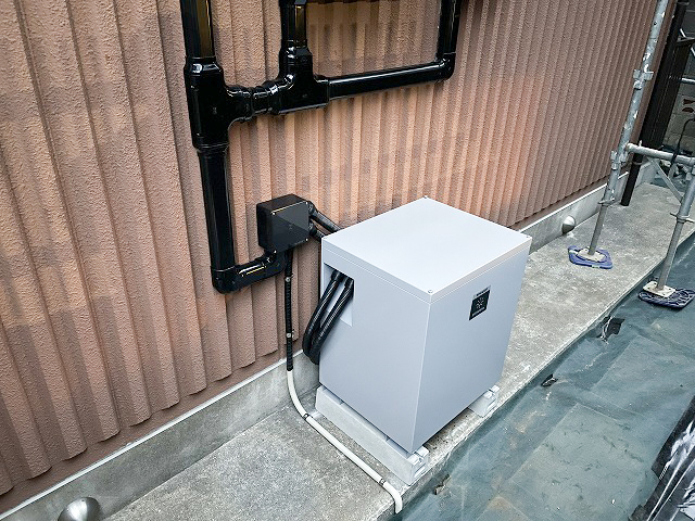 天候が悪い条件でも優れた耐久性と高い出力・効率を発揮するドイツ生まれの太陽光発電システム「Qセルズ(現ハンファ)」をご提案しました。更に太陽光発電と夜間電力を効率よく充電できる小型の蓄電システムを組合せています。素敵な洋瓦を使った既存の屋根に、専用の金具を使って設置しました。