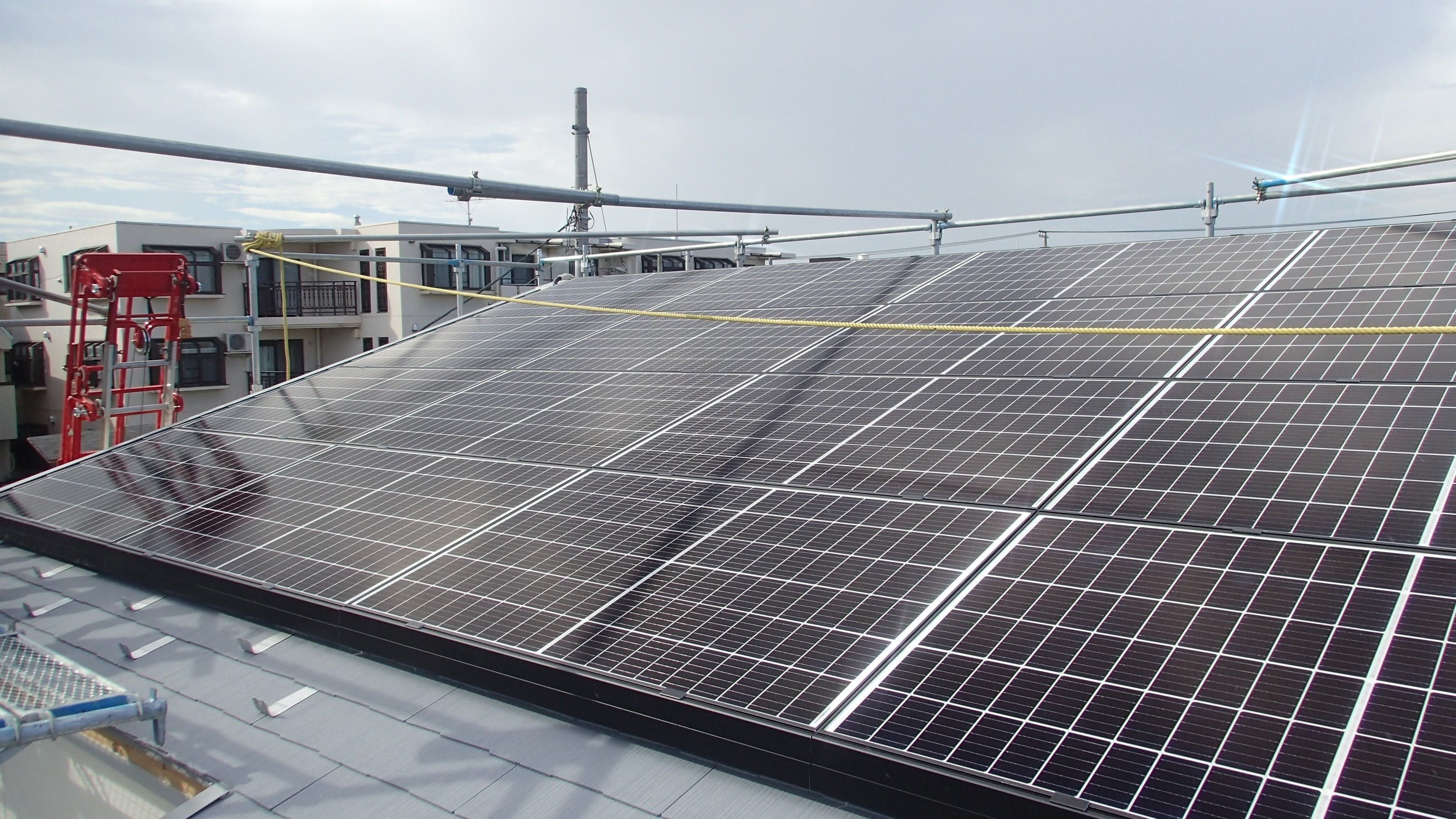 川崎市多摩区O様邸の新築住宅に太陽光パネル5.6kWを設置致しました。設計士様とお打合せの上、お客様が気にされていた配線や配管を隠蔽配管する事で仕上がりにもご満足頂きました。