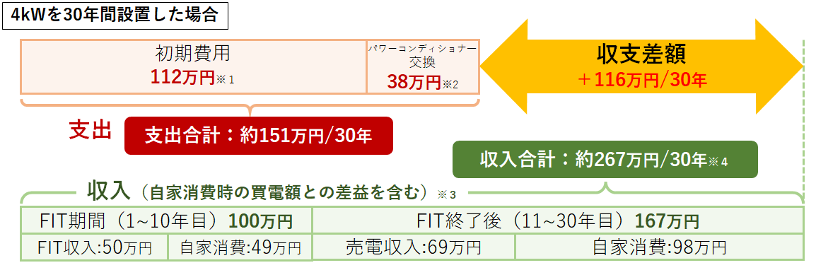 太陽光発電システム(4kW)の支出と収入は?
