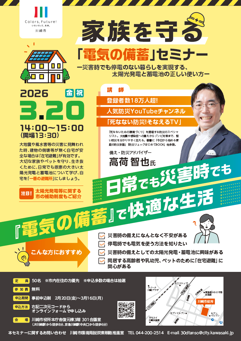 【3/20(金・祝)】「家族を守る『電気の備蓄』セミナー」開催のお知らせ
